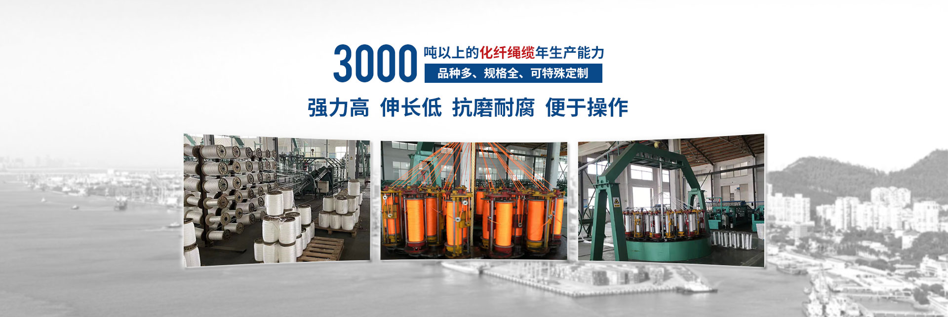 揚(yáng)州神龍繩業(yè)有限公司,位于江蘇中部古城揚(yáng)州北首,古運(yùn)河畔,中國“荷藕之鄉(xiāng)”-寶應(yīng)城西工業(yè)集中區(qū),該園區(qū)是省市中小企業(yè)創(chuàng)業(yè)示范基地、揚(yáng)州市優(yōu)化發(fā)展園區(qū)。揚(yáng)州神龍繩業(yè)有限公司是一現(xiàn)代化新型化纖繩纜的生產(chǎn)企業(yè)。交通便捷,京杭大運(yùn)河和京滬高速穿境而過,環(huán)境生態(tài)優(yōu)美。截止2022年12月底,公司實(shí)際擁有固定資產(chǎn)5200多萬元,占地建筑面積20000多平方米,標(biāo)準(zhǔn)廠房四棟及水電辦公設(shè)施齊全,機(jī)構(gòu)設(shè)置:經(jīng)理辦、技術(shù)質(zhì)量部、生產(chǎn)部、銷售部、綜合部。公司聘用10名繩纜行業(yè)高級技術(shù)人員,技術(shù)力量雄厚。擁有國內(nèi)高速三股機(jī),六股機(jī)、八股、十二股、雙層編織制繩設(shè)備和拉絲設(shè)備。計(jì)量、理化、檢測手段齊全。企業(yè)已獲得GB/T19001-2016/ISO19001:2015質(zhì)量體系認(rèn)證證書及中國船級社(CCS)、法國船級社(BV)、挪威德國船級社(DNV.GL)、日本(NK)工廠認(rèn)可證書。于2016年12月取得了解放軍裝備承制單位注冊證書,獲得了高新技術(shù)產(chǎn)品的認(rèn)定證書、江蘇省民營科技企業(yè)稱號(hào),并獲得了實(shí)用型專利,“高強(qiáng)度無捻絲滌綸樹脂插編復(fù)合繩”,專利號(hào)“ZL 2017 2 0221636.8”和多股牽引繩纜、高強(qiáng)度無捻絲海洋勘探耐磨腐防蝕止合成纖牽引繩高新技術(shù)產(chǎn)品認(rèn)定證書。為祖國的邊防和航運(yùn)業(yè)貢獻(xiàn)一點(diǎn)力量。按國際標(biāo)準(zhǔn)生產(chǎn)“繩龍”牌化纖繩纜,品種多、規(guī)格全、年生產(chǎn)能力達(dá)3000噸以上。主要生產(chǎn)錦綸(聚酰銨)、丙綸(聚丙烯)、滌綸(聚酯),超高分子聚乙烯等系列產(chǎn)品,結(jié)構(gòu)有;三股、四股、六股、八股、十二股、雙層編織繩索。規(guī)格從Ф4mm~Ф120mm系列產(chǎn)品任你選擇。可根據(jù)客戶需要生產(chǎn)特殊用途規(guī)格繩索。具有強(qiáng)力高,伸長低、抗磨耐腐,便于操作。產(chǎn)品性能指標(biāo)均符合相關(guān)的國際標(biāo)準(zhǔn)和國家標(biāo)準(zhǔn)要求,廣泛應(yīng)用于遠(yuǎn)洋運(yùn)輸、船舶制造、漁業(yè)捕撈、港口作業(yè),國防軍工、石油勘探等領(lǐng)域,取得市場廣泛認(rèn)可和市場占有率。近年來本公司奉行“以質(zhì)為本,誠信經(jīng)營,優(yōu)良服務(wù),顧客滿意”的宗旨,竭誠為廣大用戶提供優(yōu)良產(chǎn)品和服務(wù)。推動(dòng)質(zhì)量管理的深入開展,加強(qiáng)員工的質(zhì)量意識(shí),進(jìn)一步提高產(chǎn)品質(zhì)量,滿足市場和用戶的需求,為用戶服務(wù)。